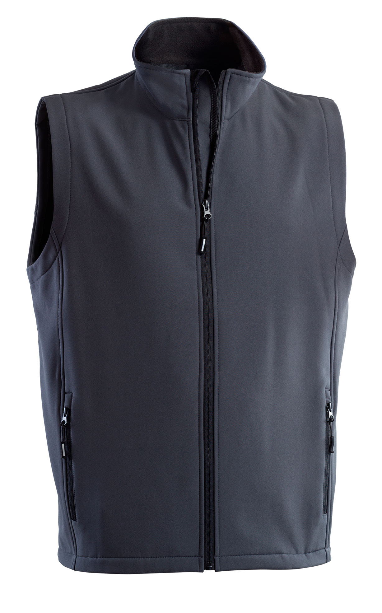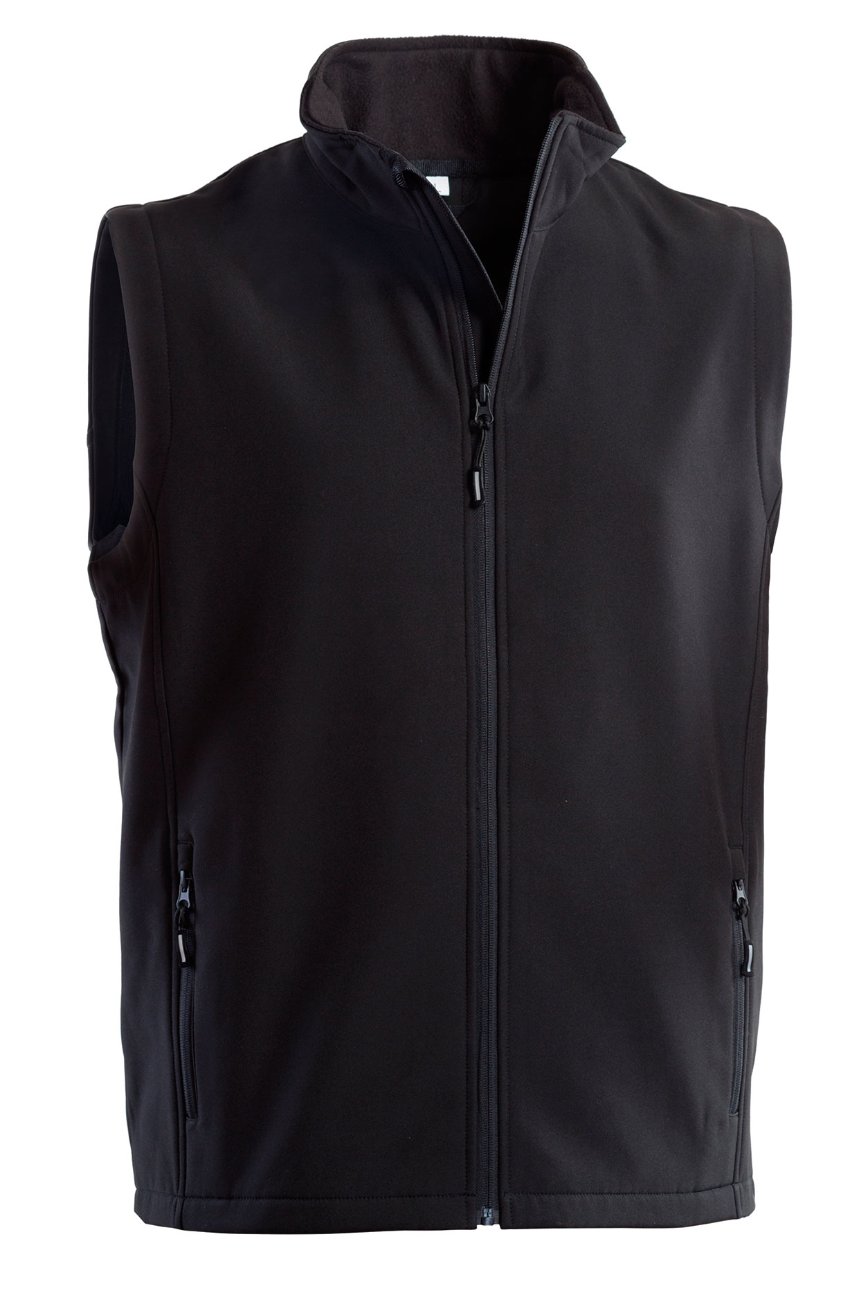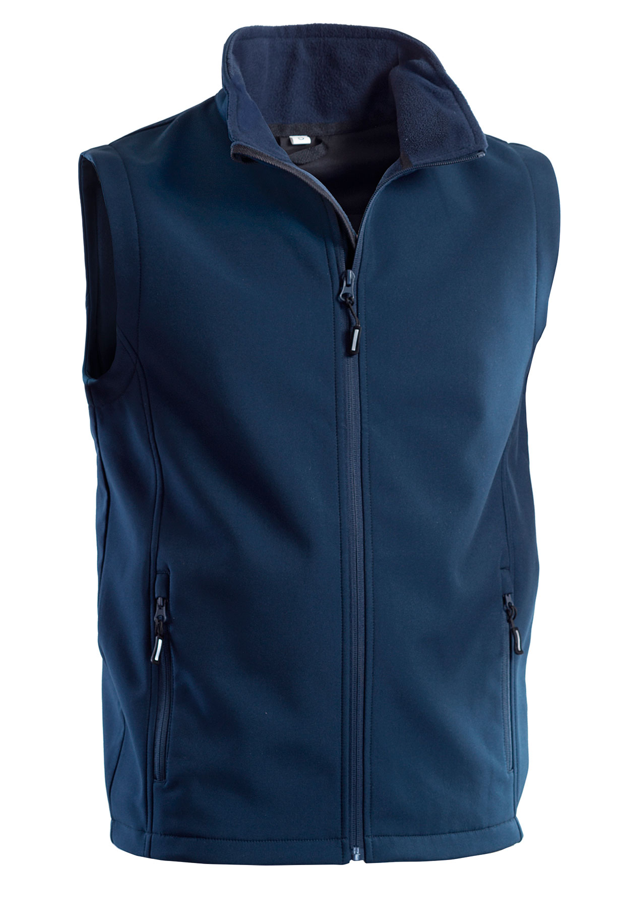Gilet softshell 2 strati, chiusura frontale con cerniera.