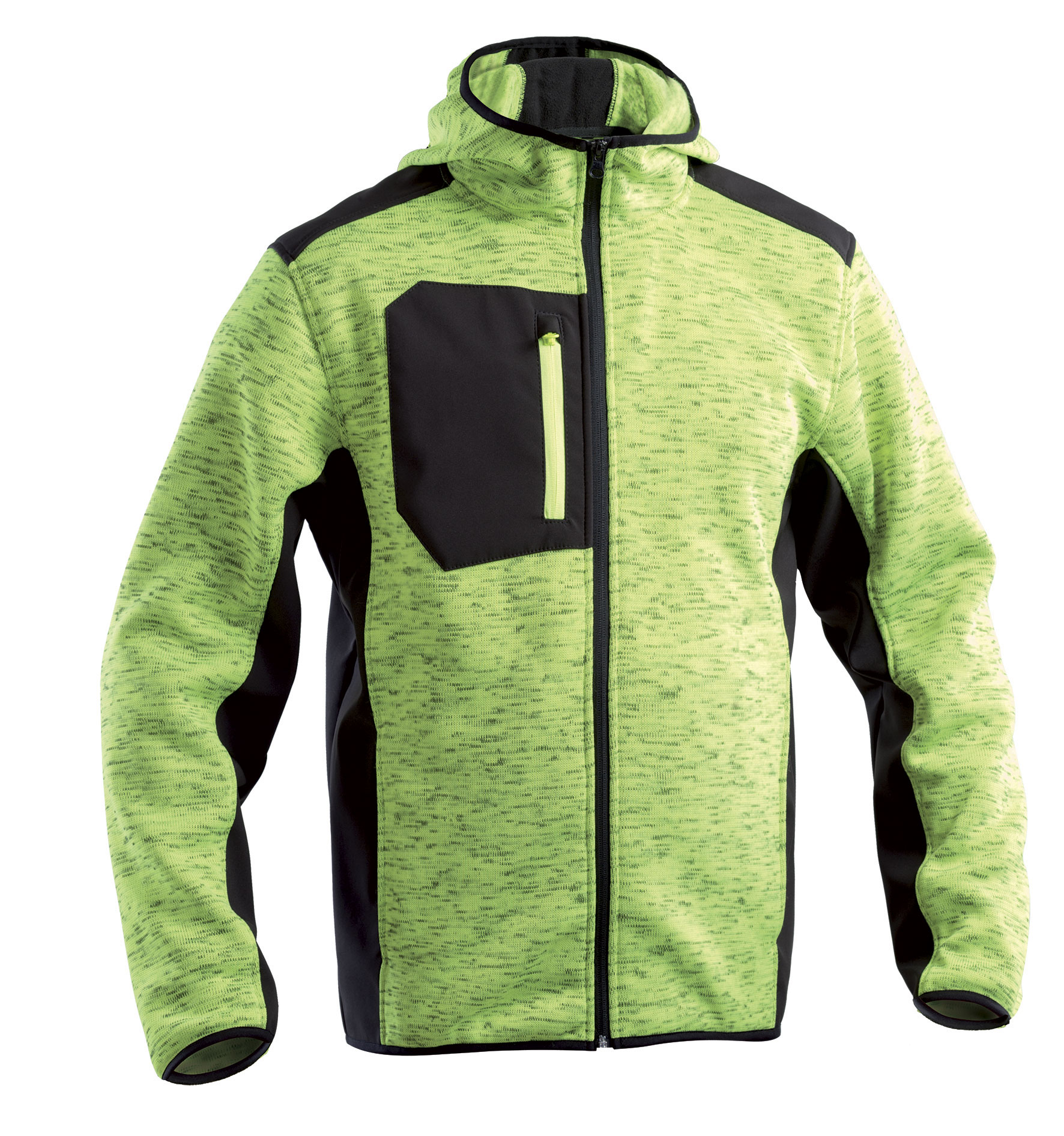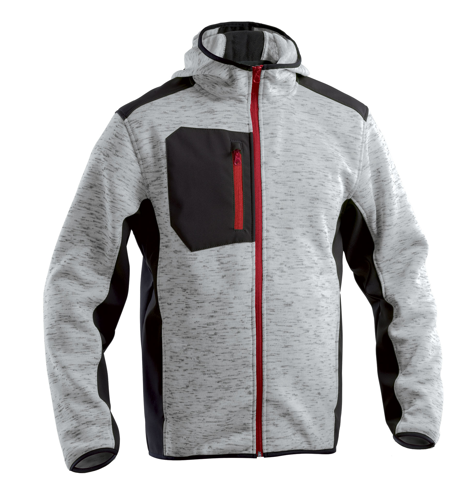 100% Poliestere melange con interno felpato 370 gr/mq ed inserti neri in softshell