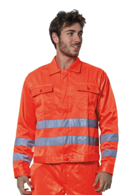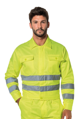 Giacchetta con due bande rifrangenti (H 6cm) che avvolgono completamente la vita e le maniche.