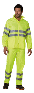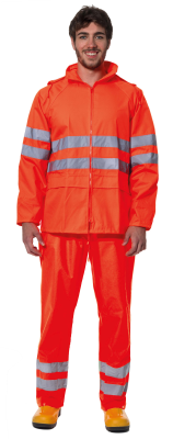 Completo antipioggia alta visibilità con bande rifrangenti di 5 cm