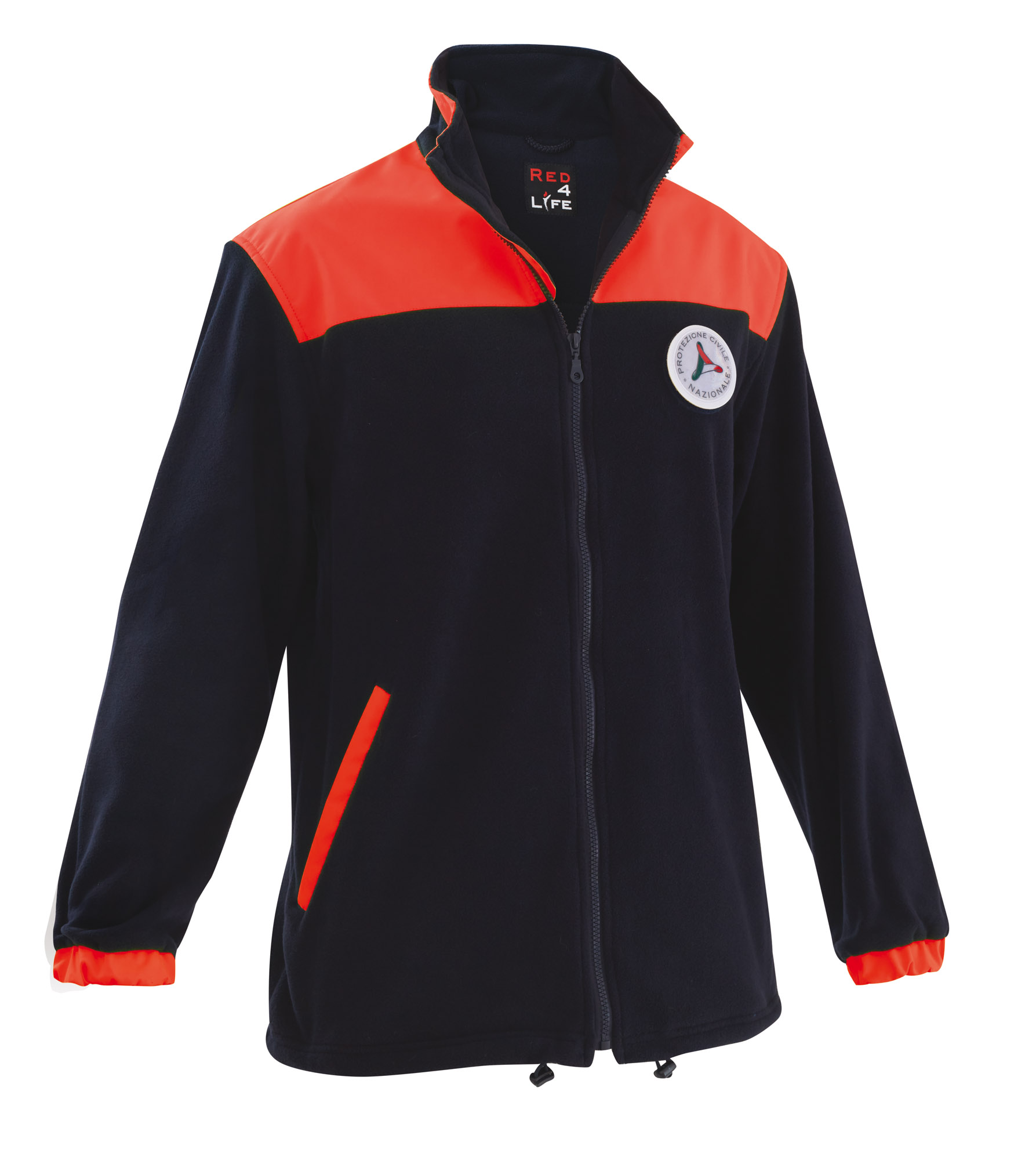 Tessuto in contrasto su collo, carrè, tasche, maniche e polsi.