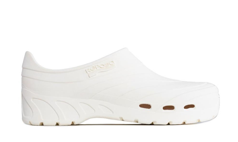 ART 300 SMART a marchio REPOSA Scarpetta sanitaria, sicura, leggera e confortevole. Realizzata in gomma espansa riciclabile, morbida e vellutata al tatto. Ottima resistenza all’abrasione, suola antiscivolo. Fondo anatomico. Inserto antistatico costampato in pianta. Zona del tallone chiusa ed imbottita per massima protezione, stabilità e comfort nella camminata; Finestre laterali per l’aerazione del piede.